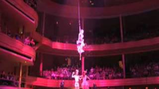 AntiGravity's performances are powerful and energetic, fusing innovative aerial techniques and daredevil stunts with grace and bravado into their own distinctive choreography. Prolific in their field, they have created over 100 unique acts that have been performed worldwide -- many of which use originally designed apparatus. A few signature creations include: AntiGravity® Boots (jumping boots that enable performers to leap and flip up to 15 feet in the air), the Double Trampoline Wall, Bungee Dancing, Aerial Carousel, Silk Hammocks and Aerial Cube.